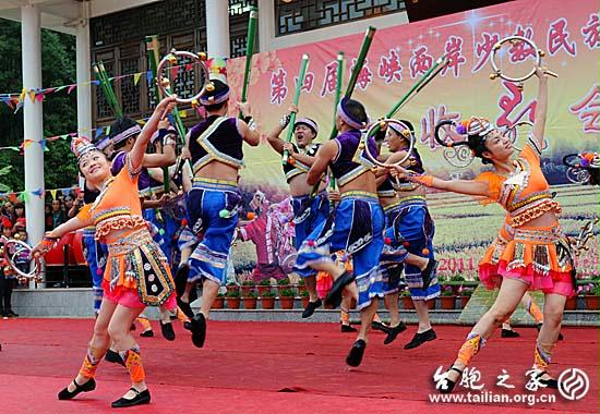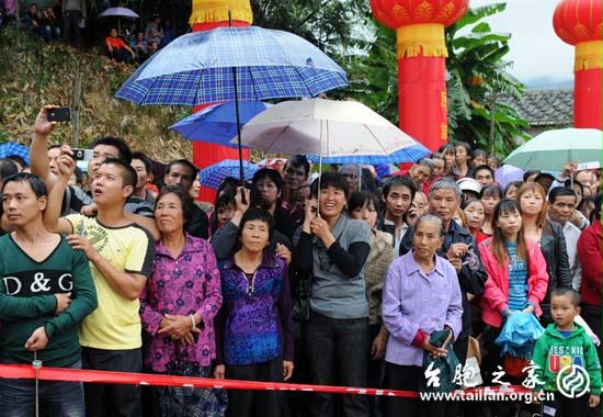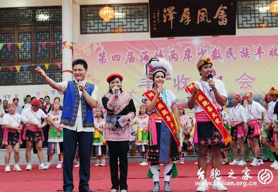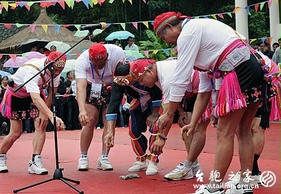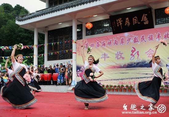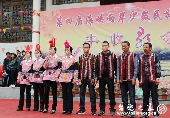 臺胞之家網訊:第四屆海峽兩岸少數民族豐收節今天上午在福州開幕,下午,精彩活動的重頭戲在福州連江縣的天竹村畬寨展開。來自海峽對岸的臺灣少數民族與大陸的畬族同胞冒著陣陣細雨,開展富有民族特色的“豐收歌會”,共同慶祝豐收的節日,分享豐收的快樂。全國臺聯副會長陳傑、省臺聯副會長葉露昆、柯連妹與冒著細雨與聞訊從四面八方趕來的一千多名群眾一起享受和諧的共鳴。