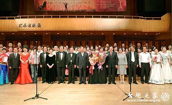福建省直黨工委常務副書記朱清上臺祝賀演出成功並與兩岸合唱團合影 鄭嵐/攝影
