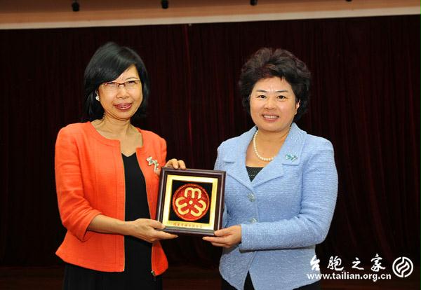 福建省婦聯主席吳洪芹(右)與臺灣中國統聯婦女部宋元部長交換紀念品 鄭嵐/攝影
