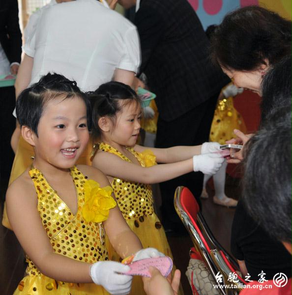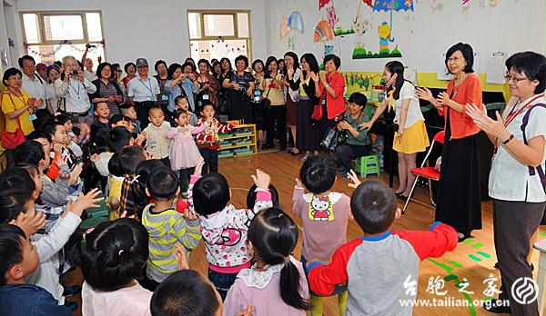 參訪團員一早首先來到省婦聯所屬的金山幼兒園參觀,受到園長和教師們的熱烈歡迎,天真活潑的孩子們給來自臺灣的奶奶、阿姨們,送上親手制作的卡通胸針,獻上活潑可愛的文藝節目,帶去母親節的祝福和快樂,讓參訪團的成員樂的合不上嘴。