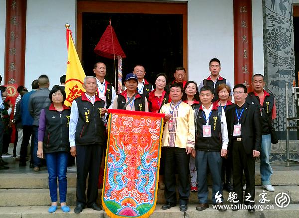 來自寶島臺灣的畬族鄉親在中華畬族宮前合影。鐘曉惠/攝影