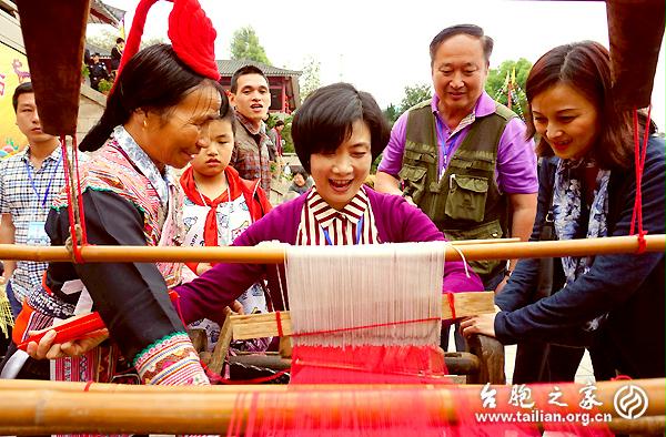 臺胞鄉親向畬族老阿婆學習手工織布 徐波/攝影