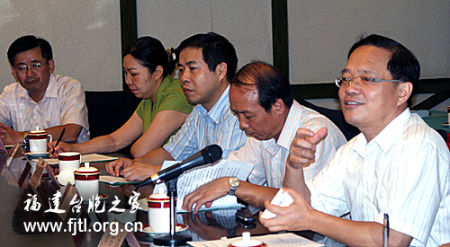 考察團一行與福建省鄉村休閒發展協會、省農業廳海峽兩岸農業合作試驗區工作領導小組辦公室及相關部門進行了兩場座談,下午又與省發改委、省臺辦、省農業廳、省漁業局、省林業廳、省水利廳、省農科院、省旅遊局等有關部門進行座談。省臺聯黨組書記林衛國主持了座談會,他對客人的到來表示歡迎,他說,閩臺是一家,臺灣民眾80%的祖籍地在福建,有著地緣、血緣、文緣、商緣、和法緣的歷史淵源,因此歷史上閩臺來往就相當密切。他對客人在海峽西岸經濟區建設中能抓住機遇投資休閒農業開發這一新領域表示高度讚賞。