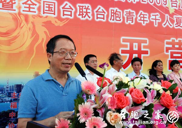 全國臺聯副會長、福建省臺聯會長陳耀中代表主辦單位講話,他對臺灣學子和朋友們的到來表示最熱烈的歡迎,他說:福建與臺灣最近距離只有80多海里,臺胞中有80%的祖籍地在福建,具有“地緣近、血緣親、文緣深、商緣廣、法緣廣”的獨特區位和人文優勢。今年5月,國務院頒發了《關于支持福建省加快建設海峽西岸經濟區的若幹意見》,明確要求福建省在兩岸人民交流合作先行先試,推動兩岸大交流、大合作。福建省成為兩岸同胞共同發展的基地,也是經濟持續發展、文化更加繁榮、綜合競爭力不斷增加、人民群眾安居樂業和諧區。他希望本次夏令營能給營員們一個兩岸青年交流、聯係的平臺,也希望各位營員都能成為兩岸民間交流的友好使者。兩岸青年攜起手來,為兩岸的發展和繁榮,為建設我們共同的家園,為炎黃子孫的興旺發達作出貢獻。