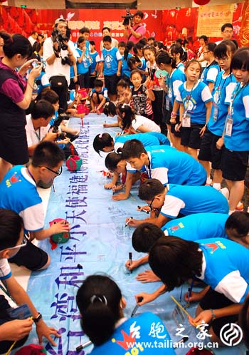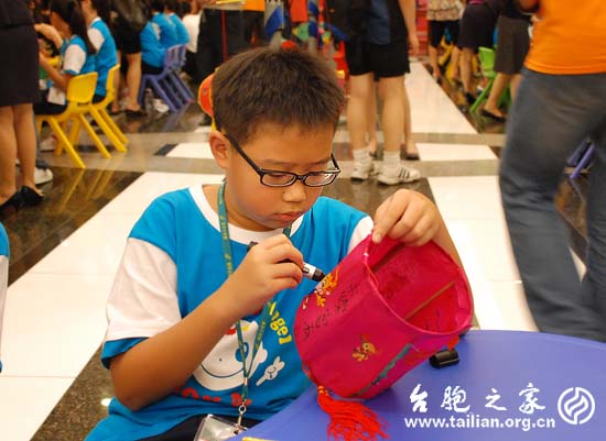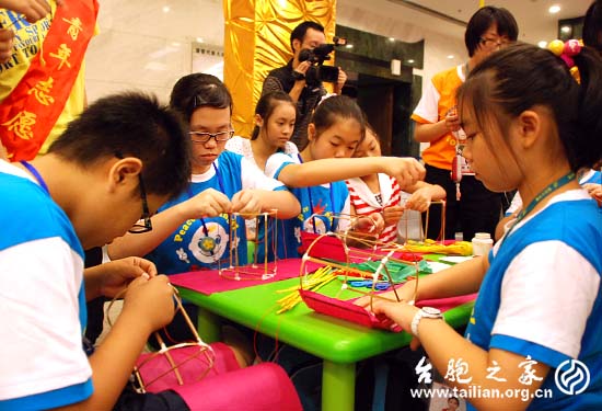參觀之後,臺灣和平小天使在館內開展了巧手體驗傳統“燈籠”制作工藝的活動。孩子們在福州燈籠制作大師的指導下,分成十個組,親手制作傳統燈籠。經過一個多小時的精心制作,再加以悉心裝點,寫上聲聲的祝願,漂亮、別具風格的燈籠呈現在眾人眼前。