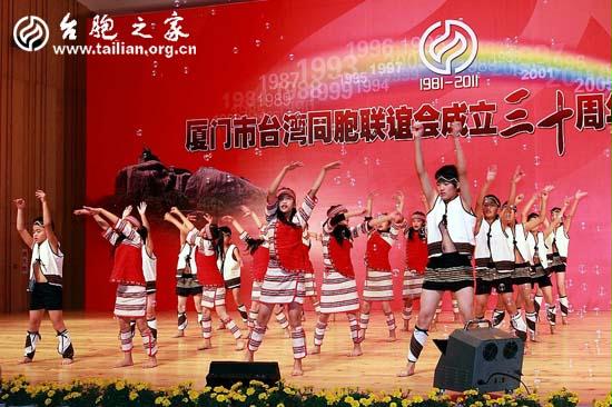 紀念大會結束後,來自臺灣桃園高義小學和思明區少年宮的兩岸少兒同臺演出,獻上一臺頗具閩南特色和臺灣少數民族風情的節目,為廈門市臺聯30歲慶生。(廈門市臺聯 戴曉玫/文 陳琪/圖)