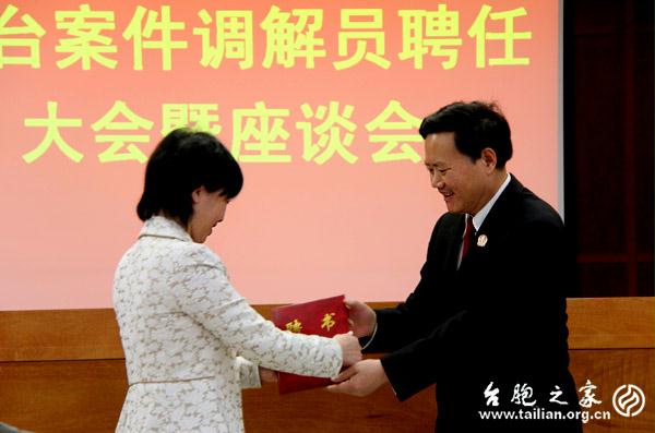 福州市臺聯副會長林鴻榕(左)受聘本市第二批涉臺民商事案件特邀調解員 葉彭清/攝影