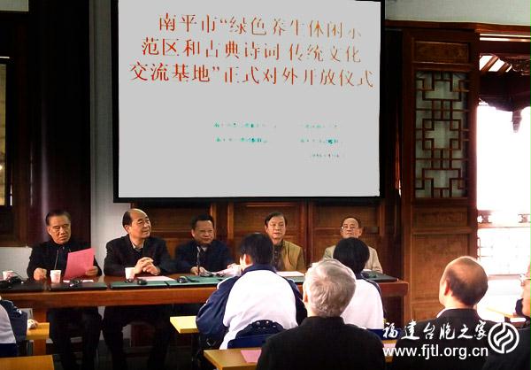 福建臺胞之家網訊: 1月6日上午,南平市“綠色養生休閒示范區和古典詩詞傳統文化交流基地”正式對外開放活動啟動,這標志著南平市臺聯傳承中華傳統文化,開展對外文化交流又上了一個新臺階。活動由南平市臺聯陳建華會長主持,省臺聯副會長梁志強、省詩詞學會副會長張弈專、南平市原人大主任徐肖劍、南平市原政協副主席范陽善、南平市政協港澳臺僑和外事委員副主任梁婉娥、南平市團市委副書記吳孔盛以及南平市臺聯理事、南平人大華僑臺胞委員會、南平市文聯等有關部門人員出席了此次活動。