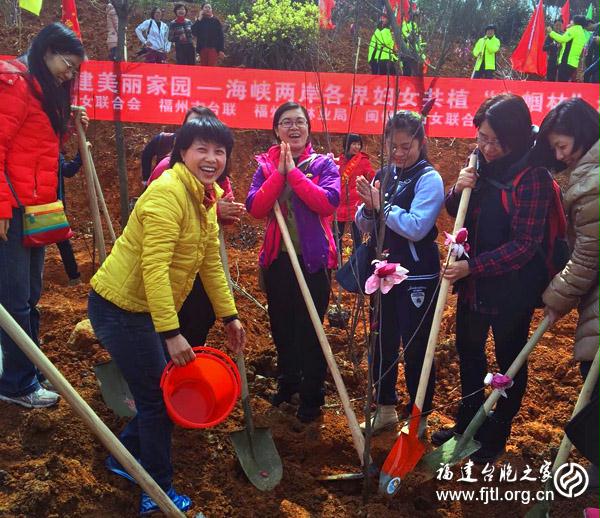 福建臺胞之家網訊: “走向生態文明新時代,建設美麗中國,是實現中華民族偉大復興的中國夢的重要內容。”為了積極踐行習近平總書記的這一講話精神,同時推動在榕臺胞搶抓機遇、擔好責任、積極融入福州新區建設發展 ,福州市臺聯組織全市定居臺胞、臺商代表參加了福州市婦聯在3月11日舉辦的“海峽兩岸各界婦女共植‘巾幗林’志願服務活動”。