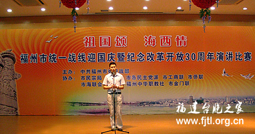 為紀念改革開放,謳歌中國特色社會主義建設、多黨合作和統一戰線事業所取得的偉大成就,福州市臺聯組織臺胞參加市統戰係統迎國慶暨紀念改革開放30周年演講比賽。