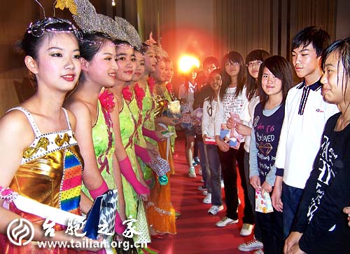 在第4屆省科技創新大賽上金門隊(右)與對手交換禮物 28日上午,組委會在龍岩一中舉辦“閩臺青少年科技教育論壇”。兩岸教師交流校園科技活動心得,探討兩岸不同的科技教育經驗。選手們在賽事之余,相互觀摩項目,切磋技藝,談學習聊生活,短短幾天已結下深深的同學情。分別之際,大家互贈小禮物,互相留了MSN、Email,相約來年再聚。