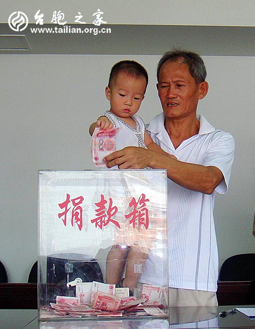 臺胞之家網訊:“莫拉克”臺風肆虐,使臺灣遭受五十年來最嚴重的水災。連日來,臺灣災情牽動著廈門廣大臺胞的心。廈門市臺灣同胞聯誼會積極響應全國臺聯的號召,于8月14日通過郵寄方式,向市臺聯理事、臺聯界別政協委員、臺胞活動小組等發出“為臺灣災區捐款倡議書”488封,得到廣大臺胞的熱烈響應。僅周一(17日)這天,就有90多位臺胞來到臺聯機關捐款。黃紹勇是第一個打進電話要求捐款的臺胞,雖然他本人是臺聯年年慰問的貧困臺胞,但是一接到捐款倡議書,大清早就從同安趕來捐了1000元。他說:“我困難的時候得到很多同胞的幫助,現在臺灣鄉親有難,我也應該盡點力。”原市臺聯會長黃啟巽不顧年事已高,也早早趕來捐款。許多臺胞動情地說,聽到自己的鄉親受災,心里很難過,錢多錢少都是心意,希望鄉親早日渡過難關。