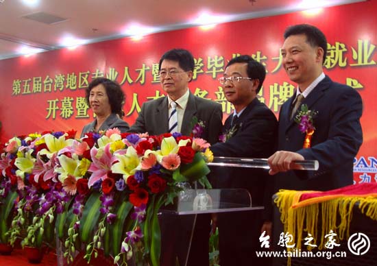 廈門市教育局、臺聯領導為“臺灣人才服務部”揭幕(攝影/戴曉玫) 此次洽談會的最大亮點是臺灣人才服務部正式揭牌成立。在開幕式上,廈門市人事局局長劉育生、市臺聯會長盧紹荀為臺灣人才服務部揭牌。設在人才服務中心內的臺灣人才服務窗口將為臺灣人才到大陸工作提供包括就業推薦、職稱評定、臺灣學歷認證等“一站式”服務。