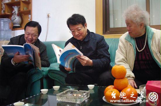 汪毅夫會長在晉江市臺聯老會長張麗卿家閱覽晉江臺聯成立三十周年畫冊 劉雲燕/攝影