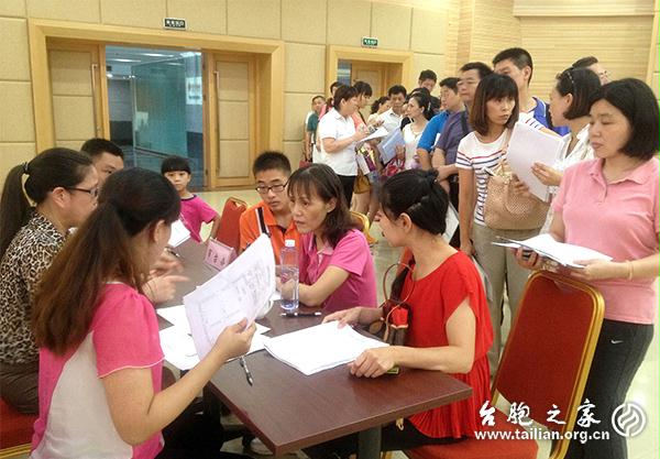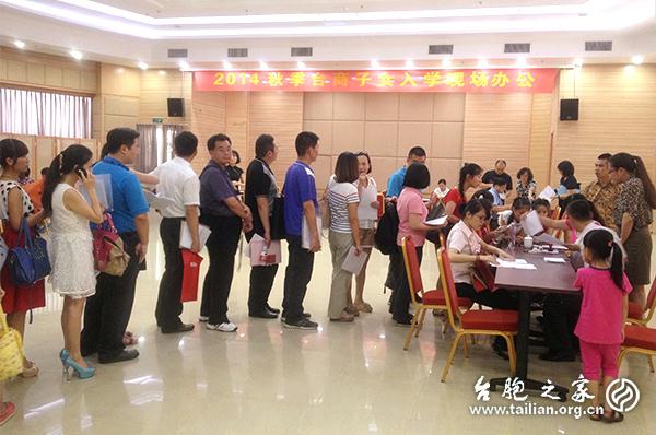 臺胞之家網訊:為幫助在廈臺商更好更快地融入廈門,加快構建兩岸同胞溫馨家園,7月22日,廈門市2014年臺商子女秋季入學現場辦公會在團結大廈舉行。這是廈門市臺聯自2002年以來,連續第十三年邀請市教育局等單位為臺商子女入學提供“一站式”就學現場服務。當天,共計約70名臺商家長前來為孩子辦理入學手續。之後,他們只要帶著現場審核過的材料領孩子到學校報到即可。
