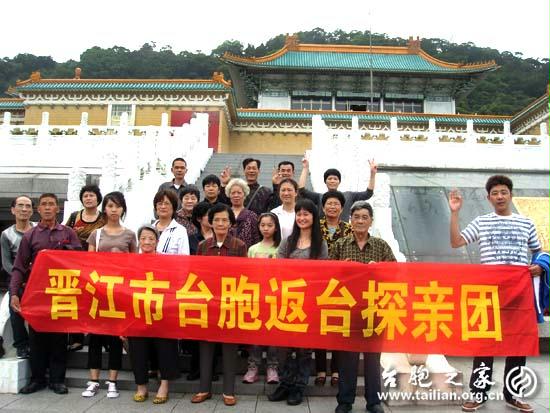福建晉江是著名僑鄉,也是臺胞的主要祖籍地之一,現有老臺胞(1949年12月31日前出生)近200多人,出于各種原因,尚有100多人從未回過臺灣老家,他們期盼能在有生之年回一趟兒時的家園。去年3月,在福建省臺聯理事、泉州市人大代表、晉江市黨代表詹淑華的反映下,晉江市委、市政府高度重視此建議,晉江市政府在極短時間內就研究並批復撥付專款,用以幫助老臺胞圓回鄉省親夢,繼首批56名臺胞于2010年6月1日-6日返臺探親後,本次又有31名團員得以返鄉探親,圓了晉江臺胞縈繞心頭的省親之夢。(圖/文 泉州臺聯 劉雲燕)
