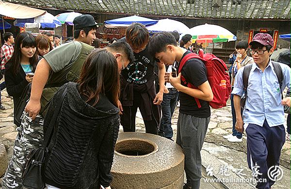 臺灣大學生參觀客家土樓古井。王珊珊/攝影