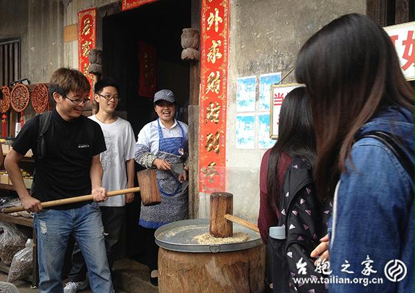 臺灣大學生親自感受客家特產的制作。王珊珊/攝影
