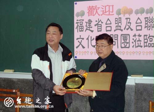 省臺聯秘書長張岩(左)與臺南大學附中校長管志明(右)互贈禮品 攝影/邱紅