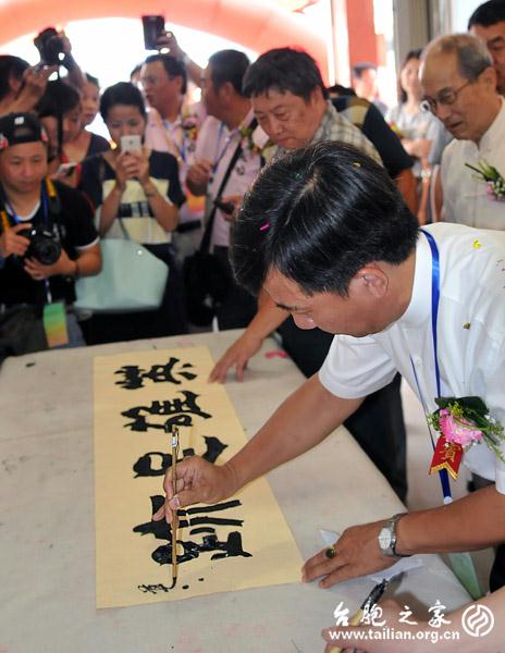 臺灣鄭成功祖廟主委鄭有懋題字“英雄足跡” 鄭嵐/攝影