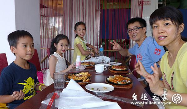 大陸和平小天使和臺灣小朋友家庭一同用餐。