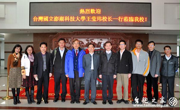 臺胞之家網福建臺聯訊:為推動兩岸教育交流與合作的深入開展,12月25日,在漳州市臺聯牽線搭橋引見下,臺灣澎湖科技大學王瑩瑋校長一行5人,前往漳州職業技術學院交流,受到學院副院長何小青及相關院係的老師、招生辦負責人的歡迎,並就兩岸高校學術如何交流與合作等事項進行交流座談。