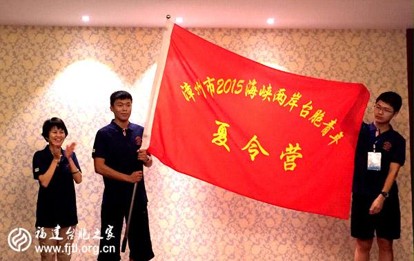 福建臺胞之家網訊: 8月11日,漳州市2015海峽兩岸臺胞青年夏令營在漳州裕元大酒店開營,市臺聯葉香雪會長在開營式上致辭,並為營員代表授旗。來自大陸的廈門大學、福州大學、福建師范大學、華僑大學、集美大學、閩南師范大學、廣西師范學院、閩江學院和臺灣島內等近20名青年學生參加了本次夏令營。值得一提的是,此次參加活動的臺灣島內青年學生均是臺籍老兵的後代。本次活動由漳州市臺聯舉辦,中華兩岸臺籍老兵子女文化交流協會副理事長鄒昭華、財務長陳瑞雪應邀出席了開營式。