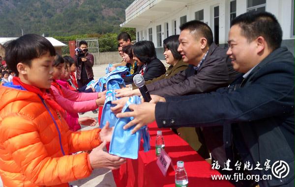 嘉賓們向扶貧點的孩子們贈送學習用品 鄭利民/攝影