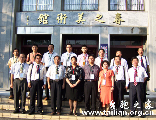 下午17:15,飛機徐徐降落在桃源機場。參訪團踏上臺灣這片神奇的土地。這次參訪團有全國臺聯聯絡部和湖南省臺聯領導,有湖南大學、湖南師大附中、周南中學和長沙市教育局的老師等,共計9人。從桃園機場到臺北,兩旁的樹木枝繁葉茂,綠樹成蔭,有一種溫馨的氣息。大巴在高速公路行駛,遠遠地便望見了綠樹叢中的圓山飯店,它聳立在山上,紅牆碧瓦,像華麗的宮殿,幾十年的風雨蒼桑,還是那樣華麗。到這里,已進入臺北了,夜幕下的臺北並沒有我想象中的那麼喧鬧。下榻臺北市兄弟大飯店。