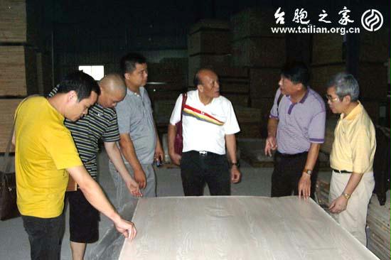省臺聯秘書長張岩一行在億森木業車間,臺商們在交流合作事宜 林國武/攝影