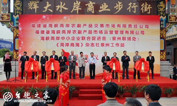 臺胞之家網福建臺聯訊:3月23日,福建省海峽兩岸農副產品交易市場有限責任公司、福建省海峽兩岸農副產品市場運營管理有限公司以及做為發起人之一的海峽兩岸中小企業聯合促進會(泉州聯絡處)、《兩岸商海》雜志社在泉州同時揭牌。省臺聯、省工商聯、省農業廳、省臺辦及臺灣中華領袖精英交流協會蔡陣勳會長等出席揭牌儀式。