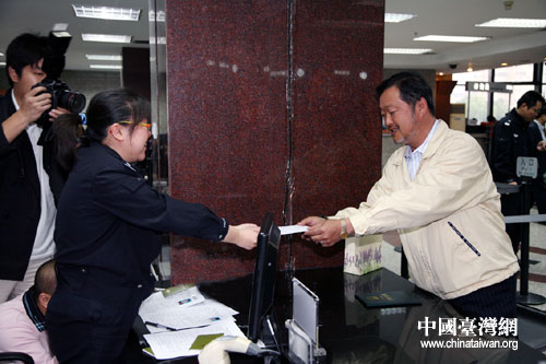 上午9時,北京穩潔工貿有限公司法人——臺灣居民賴東春先生,到北京市公安局出入境管理處遞交了換發五年有效《臺灣居民來往大陸通行證》(五年有效)的申請,成為在京辦理此類證件的第一位申請人,標志著臺胞無法在京申請補換發《臺灣居民來往大陸通行證》成為歷史。
