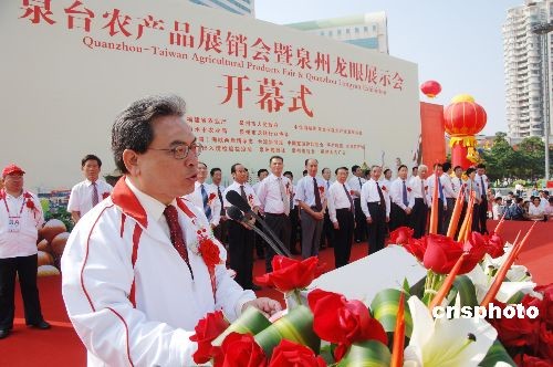 中新社泉州十月二十七日電 (黃瑤瑛 沈靜)二十七日上午,泉臺農產品展銷會暨泉州龍眼展示會在福建泉州開幕,共有來自臺灣的五十余家企業、一百余名臺商參加此次展示會,水果、茶葉、水產品等引起與會者極大關注。