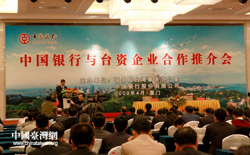 作為活動主辦方之一的中國銀行,在2008年為臺資企業提供了459億元人民幣融資。鄭立中認為,這是中國銀行對為臺企融資服務高度重視的具體體現。他說,中國銀行長期以來努力為數以千記的臺資企業解決了資金短缺的難題,今天,中國銀行專門和國臺辦一起舉辦這場推介會,進一步表明了中行對臺資企業的重視和支持。