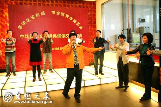 臺胞之家網訊:日前,“廈門市臺聯青年委員會、思明區地稅局組織的中華傳統文化經典誦讀交流活動”在廈門太祖食品公司成功舉行。這次活動旨在傳承優秀中華傳統文化,加強對傳統經典的理解與熱愛,進一步提升團隊的凝聚力,同時培養良好的讀書氛圍,活躍幹部職工業余文化生活。