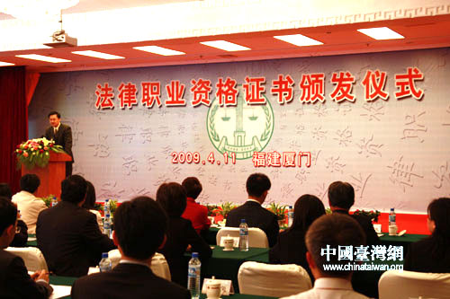 中國臺灣網4月12日廈門消息 昨天下午,司法部國家司法考試辦公室為首批通過國家司法考試,獲得法律職業資格的臺灣居民頒發了《法律職業資格證書》。獲頒證書的臺灣居民紛紛表示,國家司法考試向臺灣居民打開大門,為海峽兩岸的法律交流與溝通架起了一座新平臺。