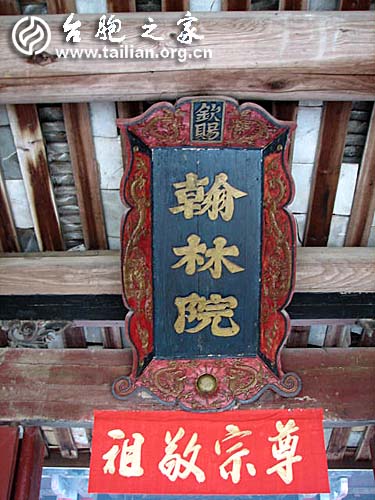 南靖縣和溪鎮麟野社聚斯堂內“欽賜翰林院牌匾”