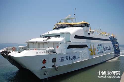 中國臺灣網5月15日莆田消息 今天下午一時許,臺灣媽祖信眾直航湄洲進香團的350名臺灣同胞,乘坐“海洋拉拉號”客輪由臺中港抵達莆田湄洲島3000噸級客運碼頭,首屆海峽論壇係列活動序幕由此拉開。