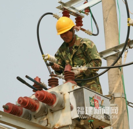 8月3日,福建東山縣供電公司技術人員正在為當地一家臺資水產品加工企業安裝供電設備。隨著伏季休漁結束和“開漁”,福建東山縣從事水產品精加工的“東興”、“東旺”、“東毅”等多家重點臺資企業用電負荷大幅度攀升,供電部門組織技術人員積極給臺資企業提供電力安全保障。(謝漢傑 攝)