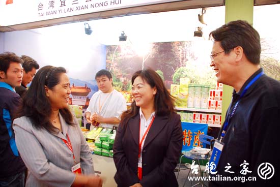 福建省臺聯副會長柯連妹(左1)葉勁光(右1)參觀臺商展區(攝影:陽夏)