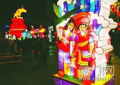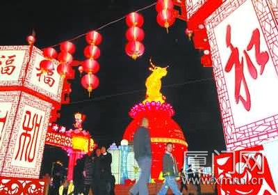 人海,燈廊。背襯著流光溢彩的廈門夜景,徐來的湖風中,人們在瑰麗的彩燈前展顏歡笑、合影留念,感受新春佳節的喜慶氣氛。燈會以“輝煌30年”為主題,突出展示海峽兩岸經濟文化交流成果,通過現代科技與傳統燈藝的完美結合,呈現出一派“火樹銀花不夜天,花燈璀璨慶和諧”的瑰麗景象。正如副市長裴金佳在致辭中所說,燈會集中展示了廈門改革開放30年來,全市上下一心,貫徹落實科學發展觀,搶抓機遇,開拓奮進,在經濟社會建設發展中取得的豐碩成果,表達了全市人民繼續吹響時代的號角、決心把廈門建設得更加美好的堅定信念和歡慶盛世、歌頌憧憬美好幸福生活的喜悅心情,預示著廈門在新的一年里,經濟社會各項事業發展必將“牛氣衝天”。