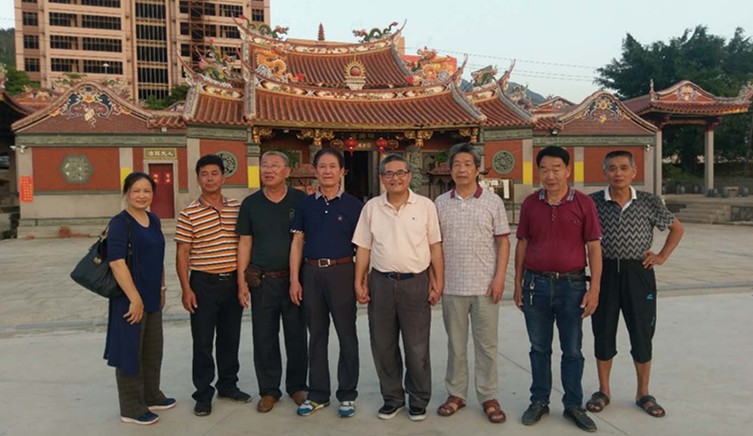 林忠山教授(左5)和林氏宗親在順濟宮前合影