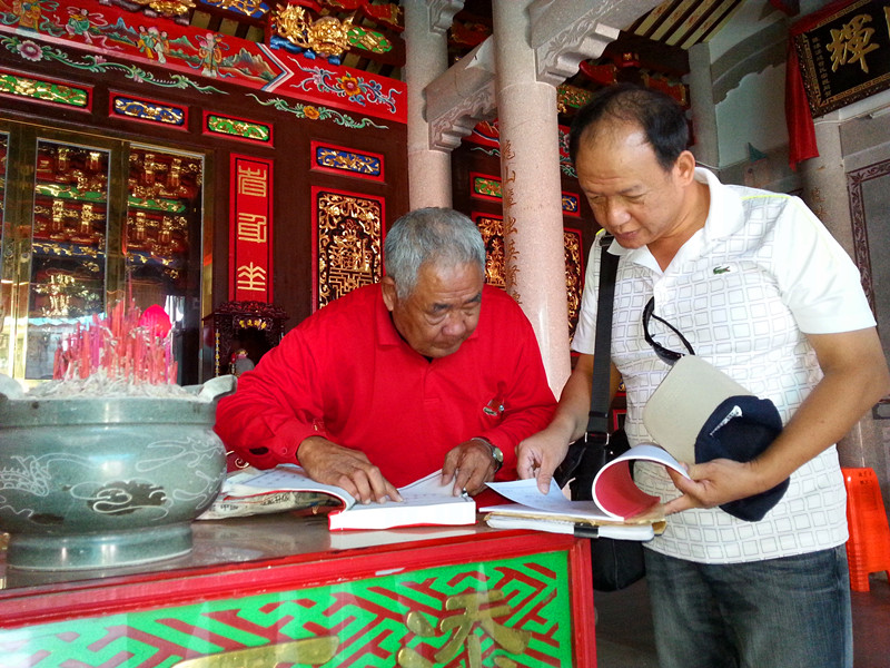 2014年10月的一天,我收到了曾先生打來的求助電話。經過努力查找、仔細比對,認定曾先生的祖先“晉江羊仔坑”極有可能位于晉江市英林鎮港塔村。10月29日,得知消息後的曾正義先生立即趕到晉江市英林鎮,在我陪同下趕往港塔村村委會。曾氏族人聞訊早就帶著《曾氏族譜》候在村委會辦公室,雙方一對族譜,一代一代往上找,發現在晉江《曾氏族譜》上記載了“第31世璧溪公”從大陸帶3個兒子到臺灣定居。而曾先生提供的資料顯示,入臺始祖為31世璧溪公,雙方記載的世係、生年、入臺等相吻合。據臺灣方面族譜記載,這一支曾家從晉江英林羊仔坑遷往臺灣,第一代壁溪公生于乾隆乙酉九月十八日,第二代呈建成,第三代雲秋榜,第四代人萬福,第六代文字輩,第七代煥字輩。曾先生正是煥字輩,他說:“我兒子是國字輩,下回一定帶他們回來祭祖。”按捺不住激動的心情,在宗親的帶路下,曾先生來到村里的曾氏宗祠,站在列祖列宗牌位前,燃上三柱香,告慰先祖:“曾家這一脈人回來了!”讀著祠堂里的族規,找到自己“煥”字輩的出處,曾先生興奮不已。他說:“我父親今年90多歲了,這回知道我找到宗親了,不知道有多激動!”