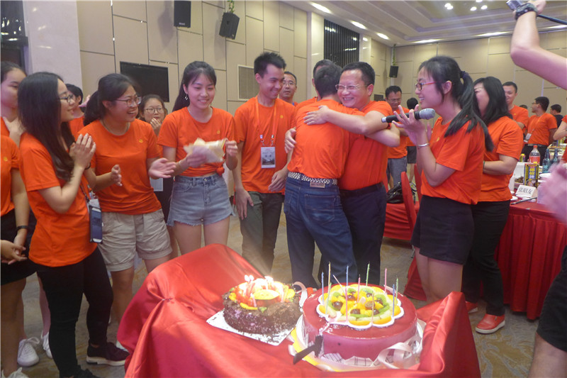 聯歡晚會上,兩岸學子們載歌載舞,盡情聯歡。營員們分別表演了獨唱、小合唱、民族舞蹈、熱辣勁舞以及自編自導的小品等。 晚會現場異彩紛呈、歡聲笑語。就讀廣東嶺南師范大學的大陸營員孫雲龍,還在晚會現場即席揮毫潑墨,手書“血濃于水---兩岸一家親”蒼遒的書法作品贈與福建省臺聯,贏得了營員們熱烈的掌聲。晚會進行到一半時,忽然燈光驟熄,燭火閃閃,現場唱響“祝您生日快樂”的生日歌曲,原來當天恰逢臺灣領隊李新基的生日。當工作人員把大大的生日蛋糕捧送到李新基面前時,李新基驚詫不已、百感交集。他動情地說,想不到省臺聯工作人員這麼細心周到,兩岸是一家人,今後要繼續開展兩岸青年的聯誼工作,當兩岸交流合作的友好使者。
