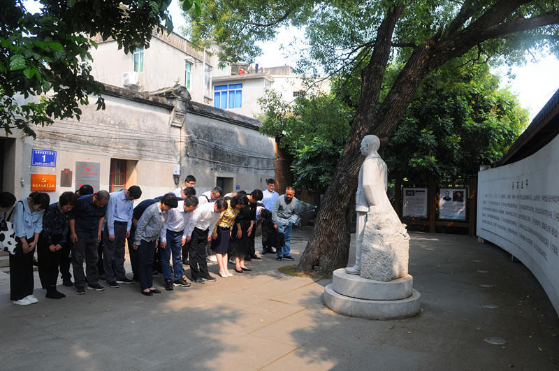 福州市倉山區螺洲鎮的吳石故居,氣氛莊嚴肅穆。黨員們佩戴黨徽,儀態莊重,瞻仰吳石烈士生活過的地方,重溫了吳石、朱諶之等革命烈士為祖國和民族解放,為祖國統一大業而不惜拋頭顱灑熱血的崢嶸歲月,思想受到了洗禮、靈魂受到了觸動,黨性得到了升華。英雄浩氣,山河永在。烈士忠魂,民族永記。吳石烈士雕像前,黨員們三鞠躬並獻上鮮花,祭奠革命英烈,深深表達了對革命烈士的無限緬懷和無限崇敬之情。