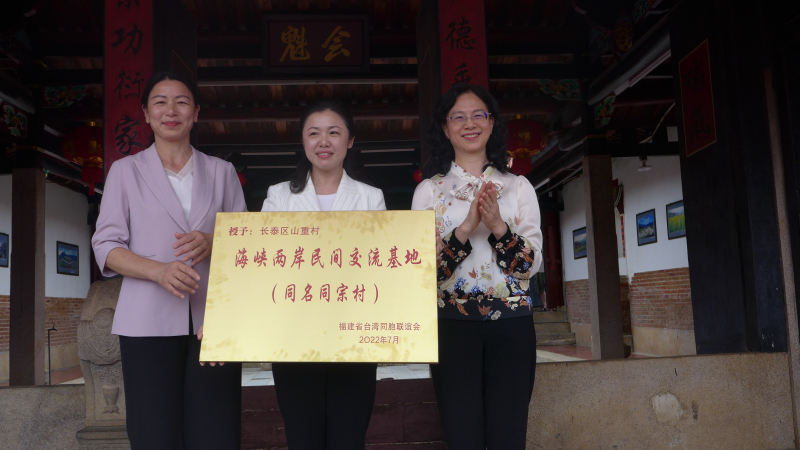 7月4日上午,福建省臺聯兩岸同名同宗村交流基地授牌儀式,在漳州市長泰區山重村薛氏家廟舉行。全國臺聯副會長、福建省臺聯會長江爾雄和漳州市委常委、宣傳部部長、統戰部部長吳衛紅共同為該基地授牌。參加以“箋同墨”為主題第十屆“同名村·心連心”聯誼活動的近百名兩岸臺胞鄉親,以及全國臺聯副會長、重慶市臺聯會長許沛,河南省臺聯會長李婷,福建省臺聯副會長、福建省臺聯原一級巡視員梁志強,漳州市委統戰部二級巡視員沈詔坤等領導也見證了基地授牌儀式。