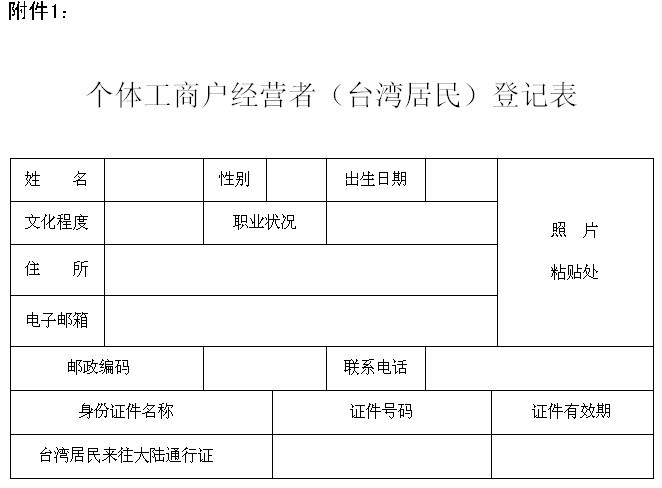附件:1.《個體工商戶經營者(臺灣居民)登記表》