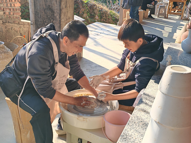 活動的重頭戲在閩臺陶瓷文化藝術創作交流基地——德化太平宮窯展開。大家紛紛卷起袖子體驗陶瓷DIY,揉泥、拉坯、捏塑、填彩……,興致盎然地創作自己的專屬陶瓷作品。歡聲笑語中,一件件充滿創意與童趣的作品誕生了,將兩岸親情揉捏進泥土,共同焙燒出跨越海峽的溫暖記憶。一位臺胞感慨道:“這是我第二次參加這個活動,每次都有新驚喜。孩子在陶瓷DIY中玩得很開心,也了解了德化陶瓷的歷史,感覺和家鄉的聯結更緊密了。”
