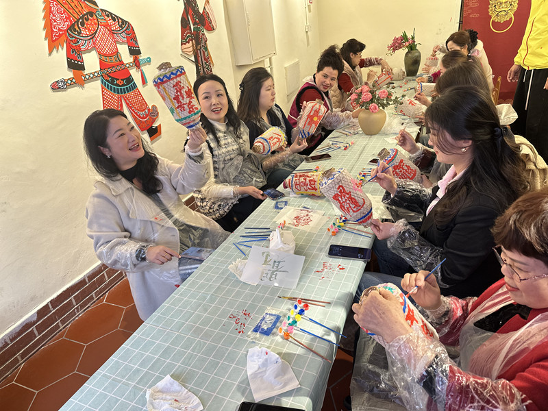 在非遺油紙燈籠手作體驗環節,非遺傳承人現場講解莆田油紙燈籠的歷史淵源、制作工藝及吉祥寓意,並手把手指導大家糊燈紙、繪紋樣。大家興致盎然、踴躍參與,或輕聲探討,或耐心制作,用一盞盞滿載新春祝福的油紙燈籠串聯起同胞情誼。