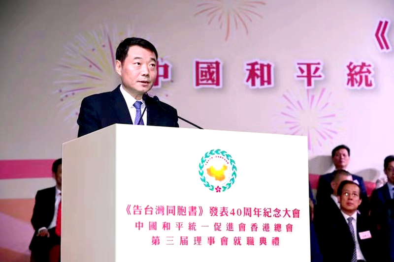 中共中央臺辦、國務院臺辦副主任陳元豐2018年11月13日出席中國和平統一促進會香港總會舉辦的“《告臺灣同胞書》發表40周年紀念大會”並致辭。
